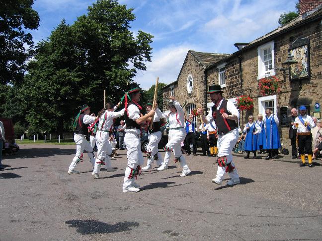 4th - Sowerby Bridge Rushcart - Someone told the newer members of the team that the Sunday was the "easy" part of the tour. How cruel was that? As we trekked over the moor to Triangle and Ripponden I could hear Martin Ord's voice murmuring "We would have danced all the way when I was in the team". True but I recall that one year the dance was the Swedish Masquerade rather than Gisburn.