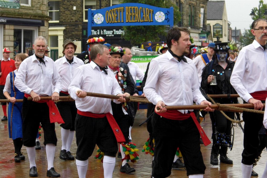 6th-8th Ossett Beercart and Beer Festival. The team are organising the first ever running of what they hope will be a traditional event. The event is in aid of the Wakefield Hospice . The idea is that a beer cart will be hauled up from that mecca of real beer "The Brewers Pride" to Ossett town hall. The town hall will then be the focal point of the beer festival with the precinct providing the setting for dance displays by the attending morris teams. Ah the hauling of the beer cart will be done by morris dancers so if your team want an invite to this event in 2015, contact our bookings secretary. Barrels of beer set up for the festival can be sponsored so if you or you organisation would like to sponsor a barrel in 2015 contact the treasurer/secretary.